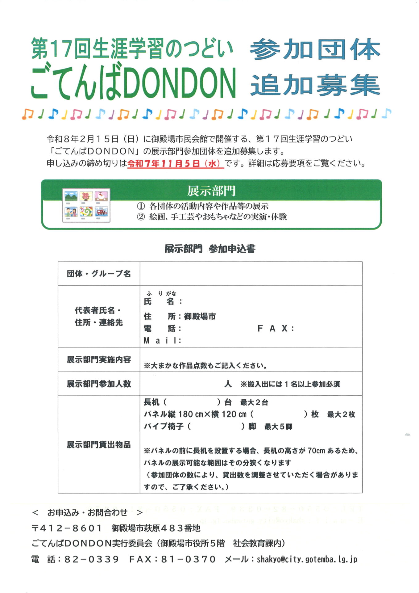 「ごてんばDONDON」の展示部門参加団体を追加募集します。