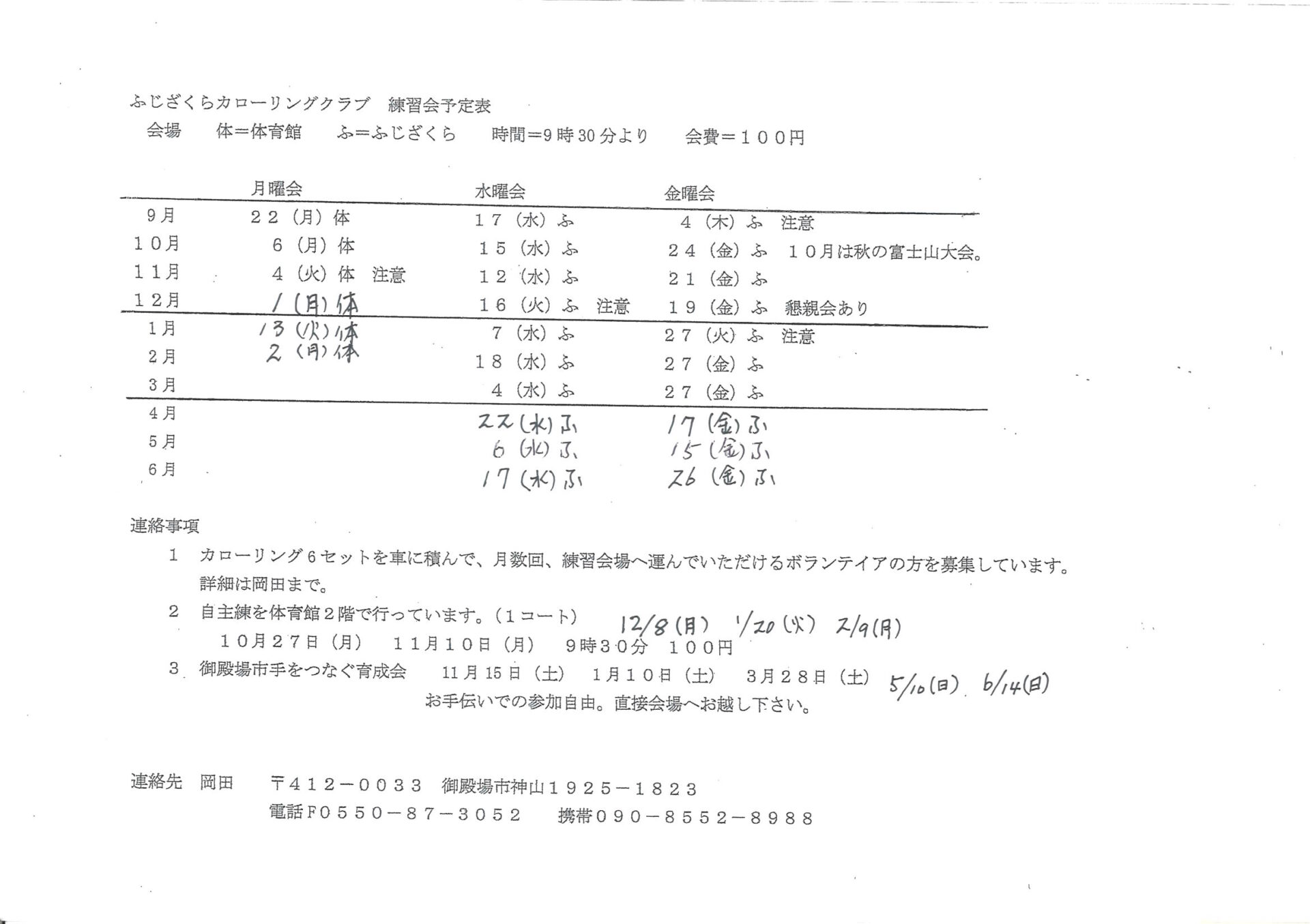 連絡先:岡田 TEL0550-87-3052 携帯090-8552-8988