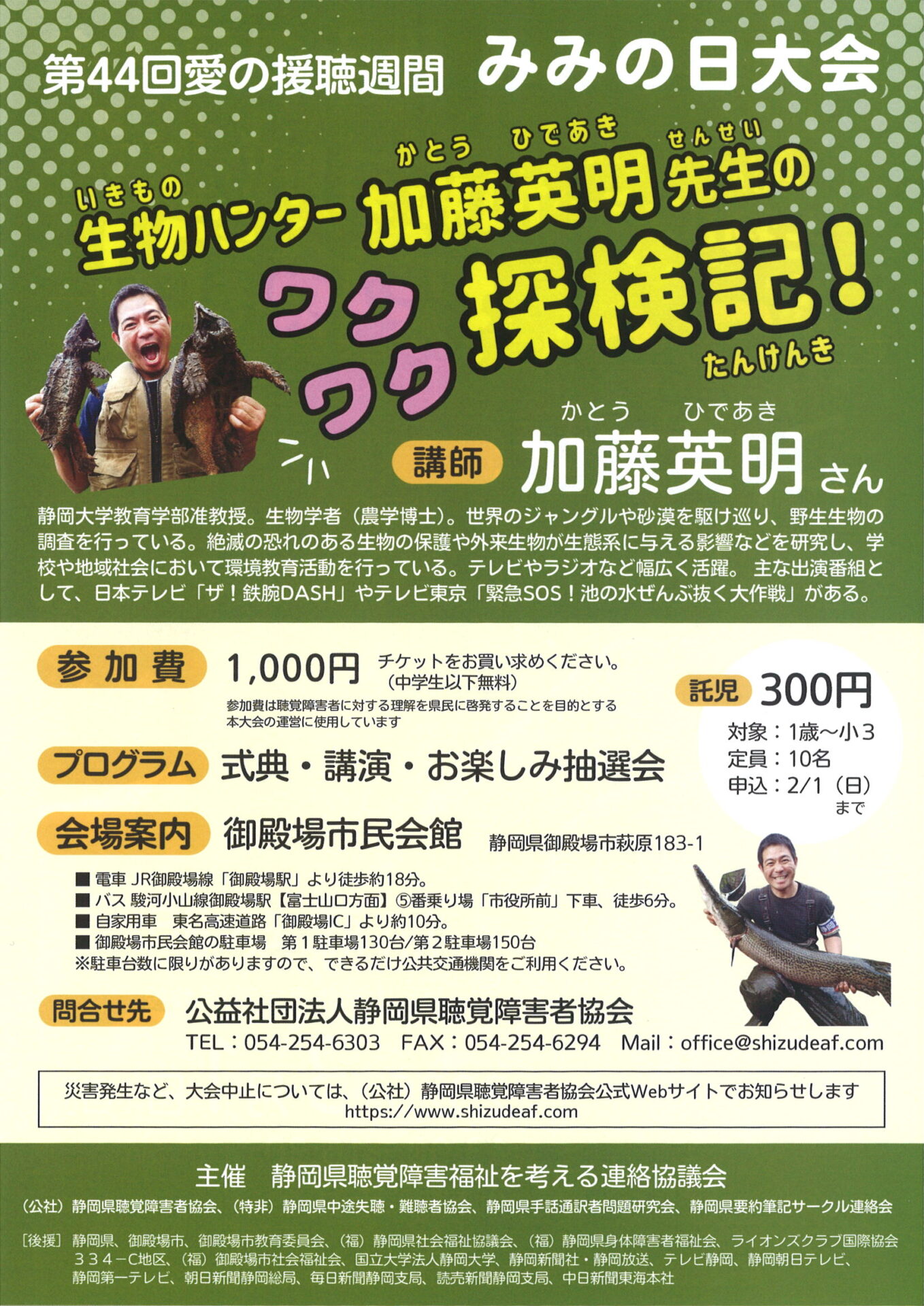 問合せ先:公益社団法人 静岡県聴覚障害者協会 TEL:054-254-6303